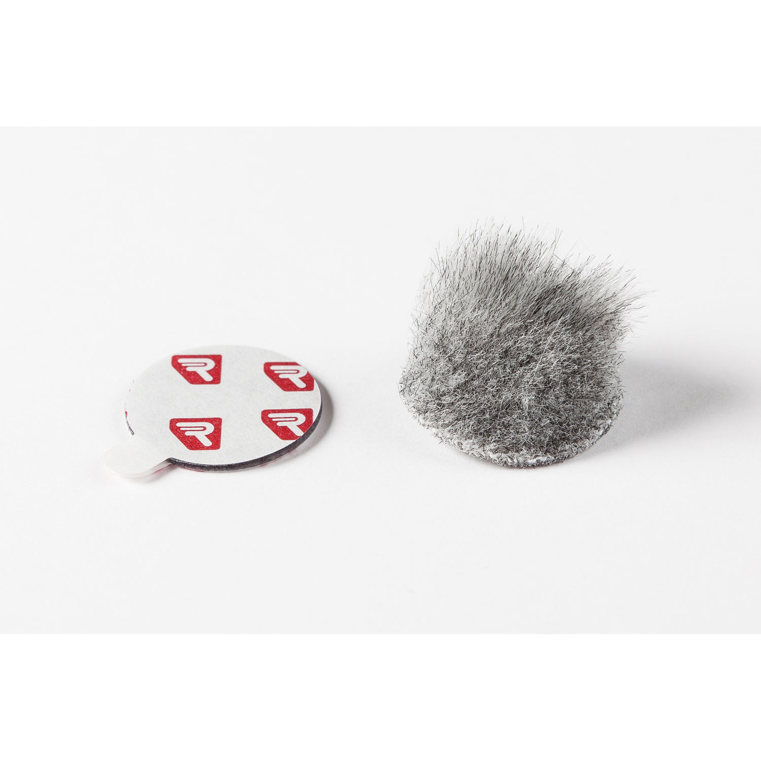 The grey Overcovers Advanced, Wind Covers & Adhesive Mounts for Lavalier Mics from Rycote include five 26mm fur discs and twenty-five 23mm round stickies. It is specifically designed for use with small personal microphones in windy outdoor conditions. Using the stickies to affix a lavalier mic onto the skin or on top of clothing, overcovers include a fur windjammer that can be affixed on top of the lav microphone, delivering excellent wind noise protection. The larger size (26mm) fur overcover is designed to match the DPA concealers.