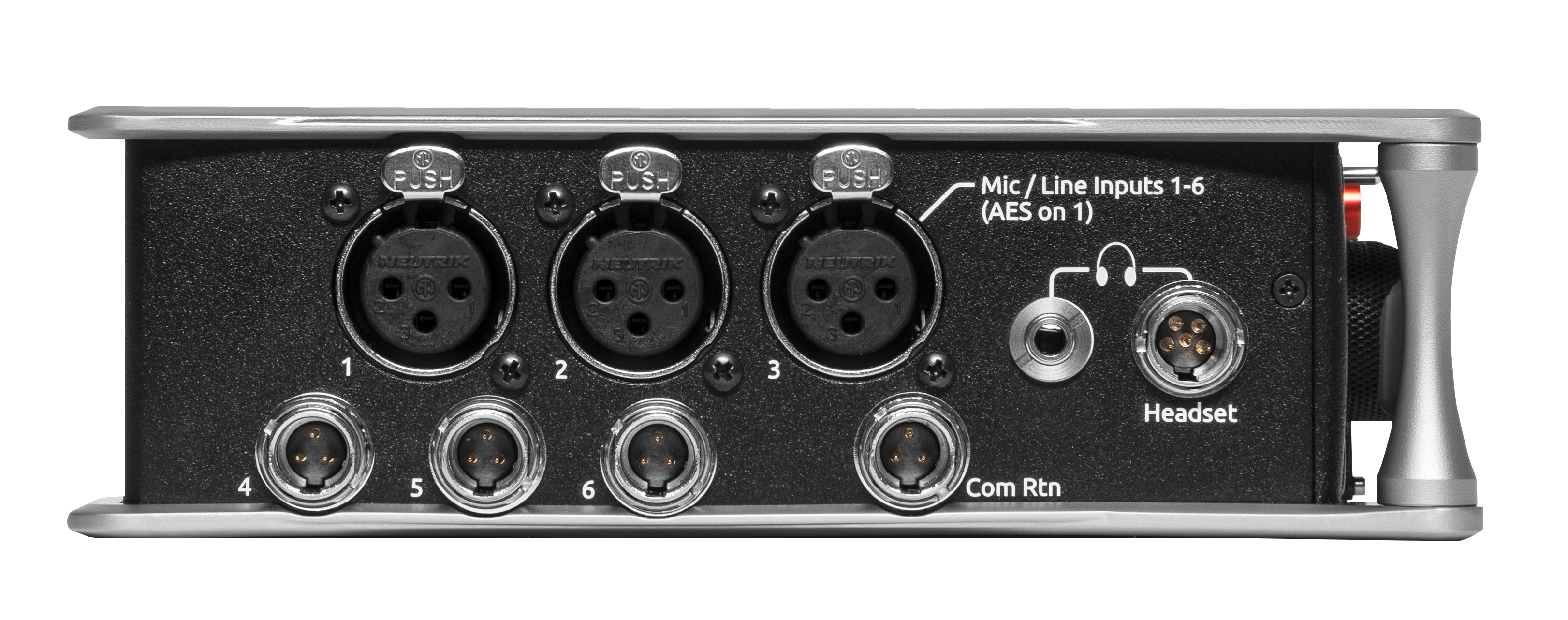 Mixer/Recorder with 6 mic/line preamplifiers, 8 channels, 12 record tracks, AES in and out, 6 analog outputs. Each of the 6 inputs includes built-in analog limiters, high pass filters, delay, 3-band EQ and phantom power. Records simultaneously to internal SSD drive and removable dual SD cards, Includes master timecode generator and Dugan automixing. Powered via 2 x L-Mount Batteries (not included) or external power via TA4 connector. XL-WPTA4 power adapter included. Will charge connected L-Mount Batteries.