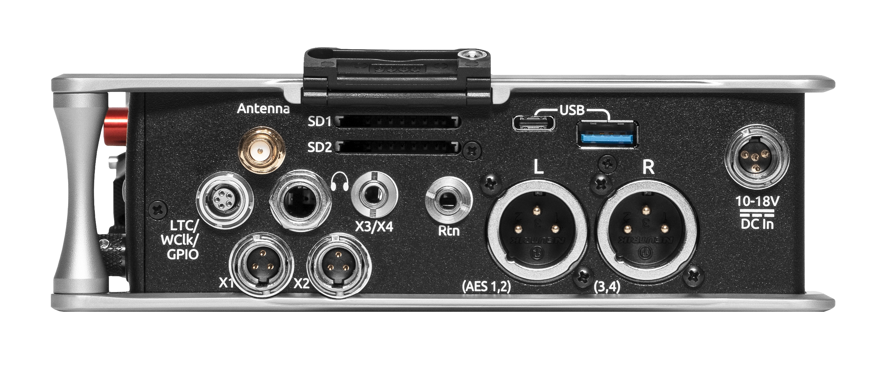 Mixer/Recorder with 16 mic/line preamplifiers, 32 channels of Dante in and out, up to 36 record tracks, AES in and out, 12 analog outputs. Each of the