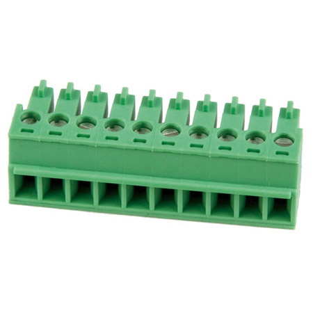 10 position plug with screw terminals, depluggable.